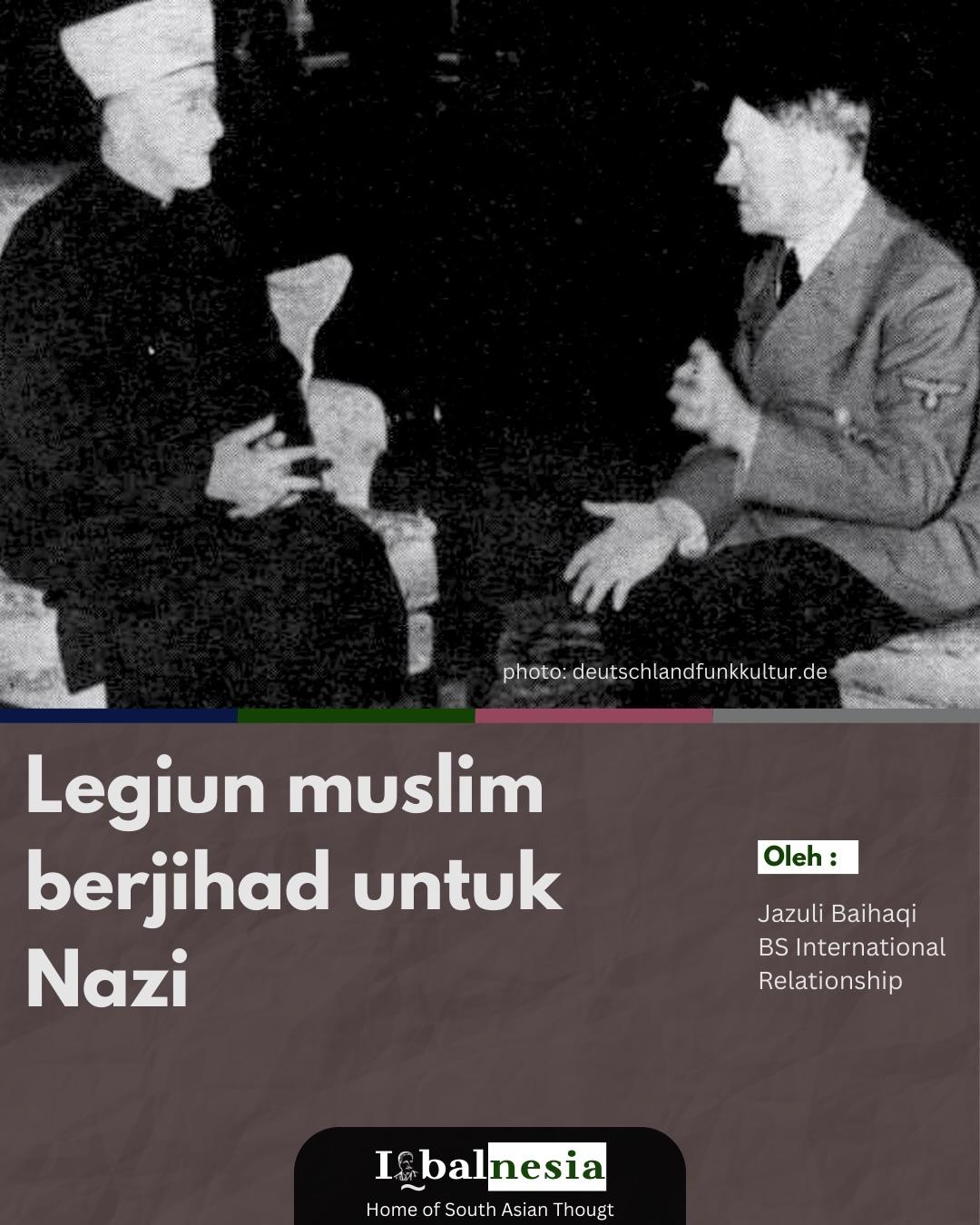 Nazi yang merupakan Singkatan dari Nasional-Sosialis merujuk pada anggota partai politik Nazi Jerman (Partai Pekerja Nasional-Sosialis Jerman) dan gerakan yang mengusung ideologi totalitarian dan rasialis di bawah kepemimpinan Adolf Hitler. Tidak seperti legiun asing lainnya, legiun Muslim dari Nazi di Jerman diberikan hak istimewa untuk beribadah seperti salat, puasa, dan bahkan diberikan hari libur ketika idulfitri. Namun, hak “istimewa” tersebut tidak serta-merta menandakan bahwa Nazi adalah mitra kerja atau sahabat umat Muslim.